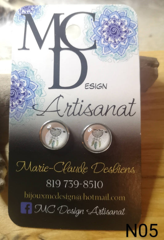 Clous d'oreilles Cabochon de verre "Capteurs de rêves"
