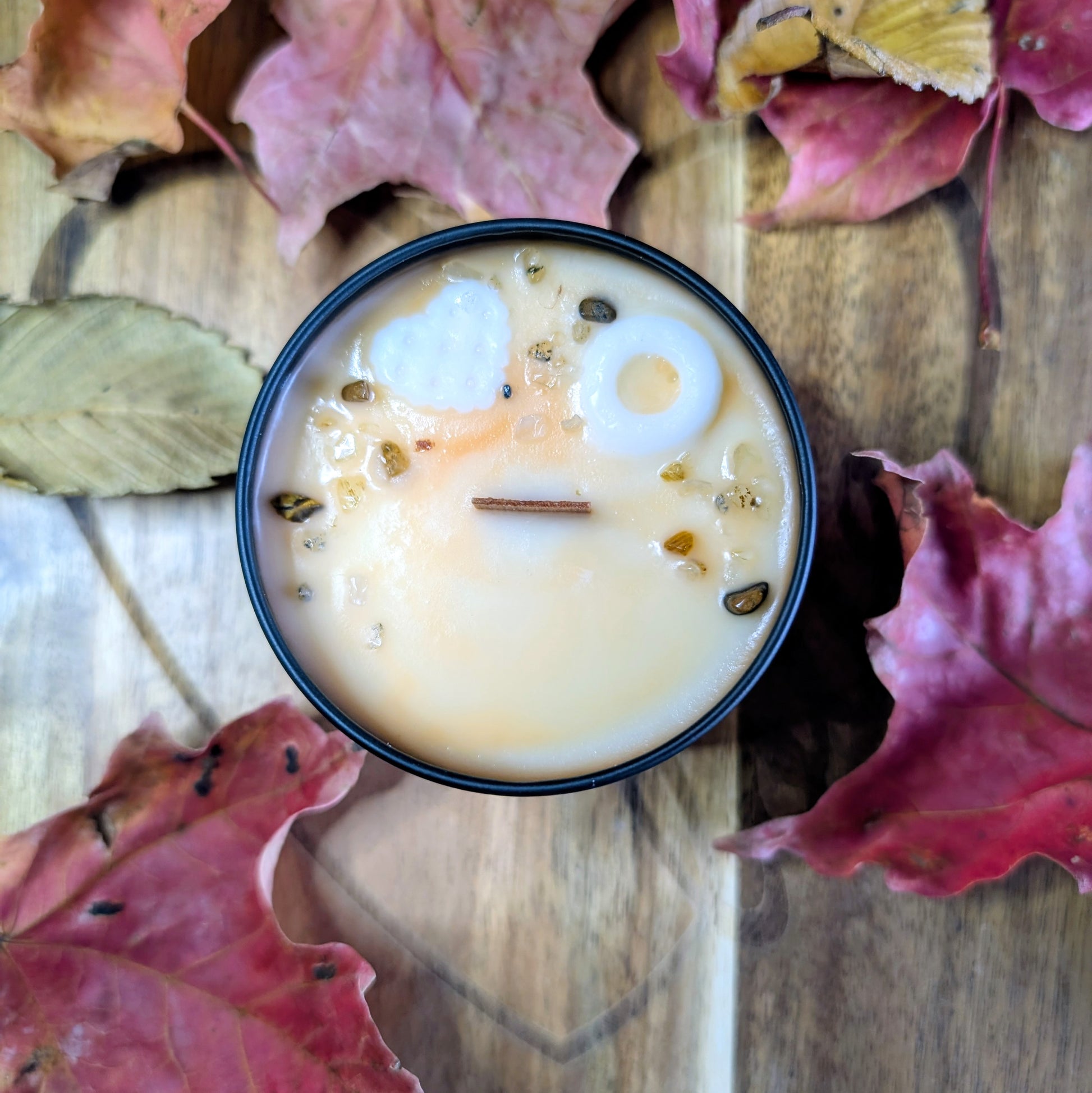 Fait à la main avec de la cire de soya biologique et mèche de bois.