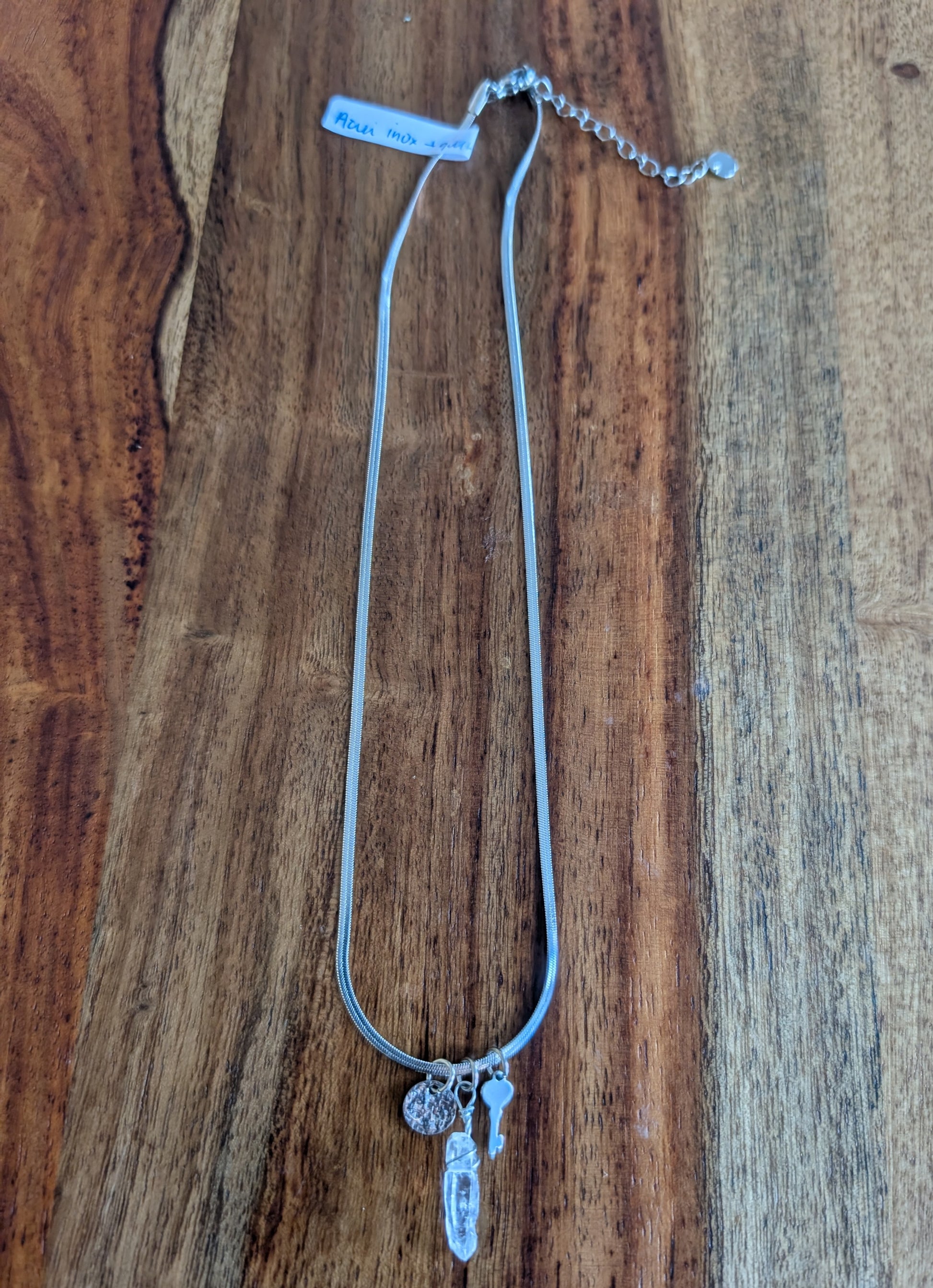Magnifique collier 100 % acier inoxydable avec chaîne plate vraiment légère et raffinée! Avec un petit quartz clair 🤍